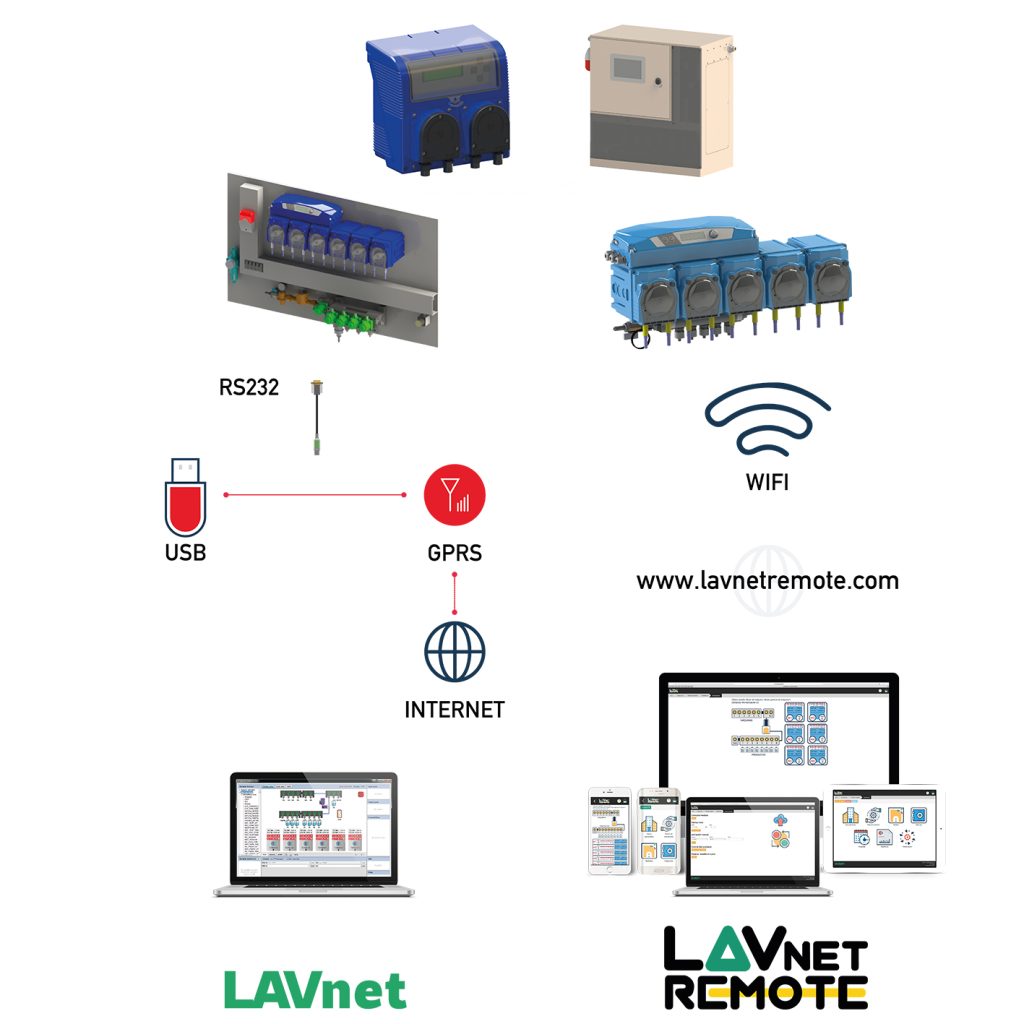LAVnet REMOTE , DDS REMOTE , TRITON , MEDUSA , CORAL , PRIME MULTILAV , MULTILAV , MONOBOMBA ve ORION serilerinin uzaktanyönetilmesini sağlar